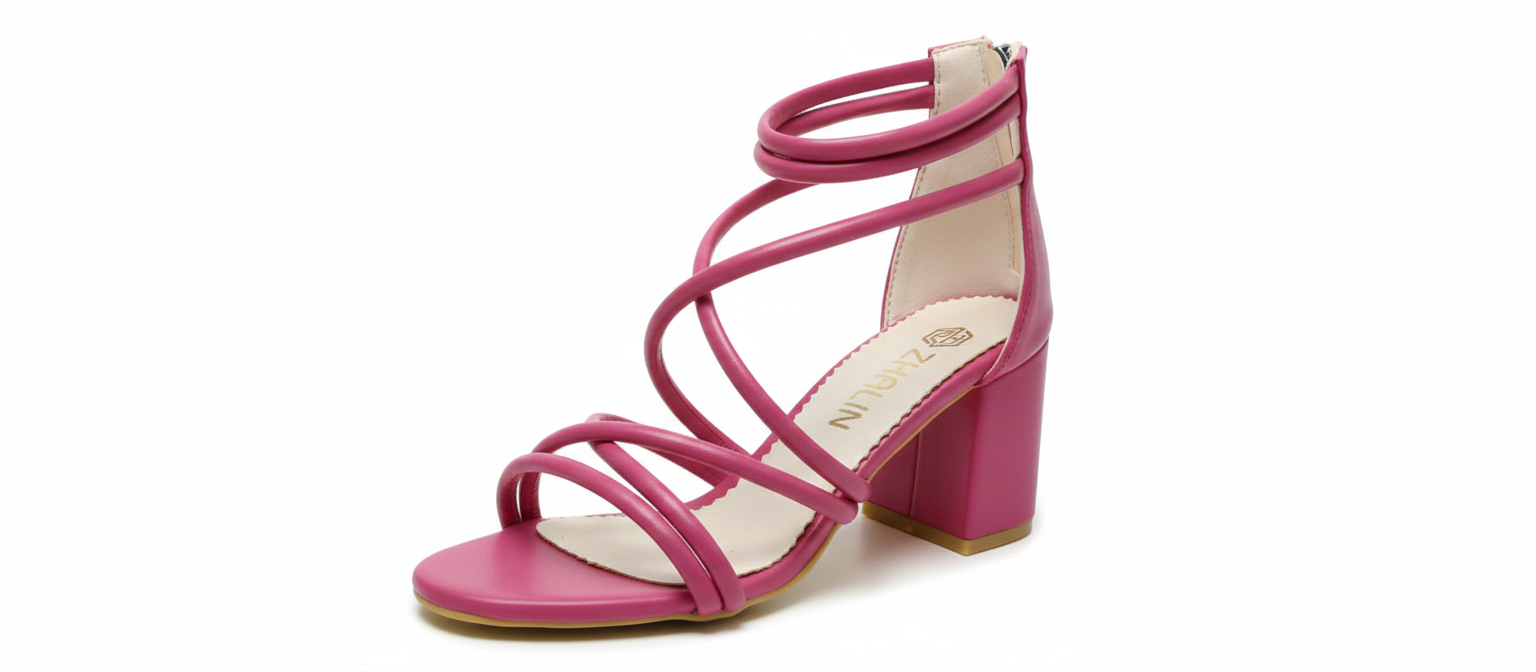 کفش صندل پاشنهدار زنانه مدل رومی جدید - رنگبندی مشکی و سرخابی