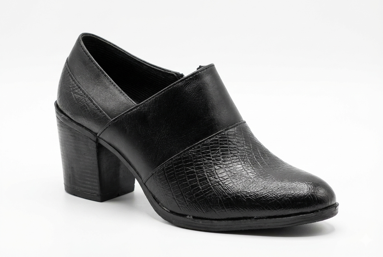 نیم زیپ زنانه پاشنه پهن مشکی | مدل ترکیبی طرح سوسماری